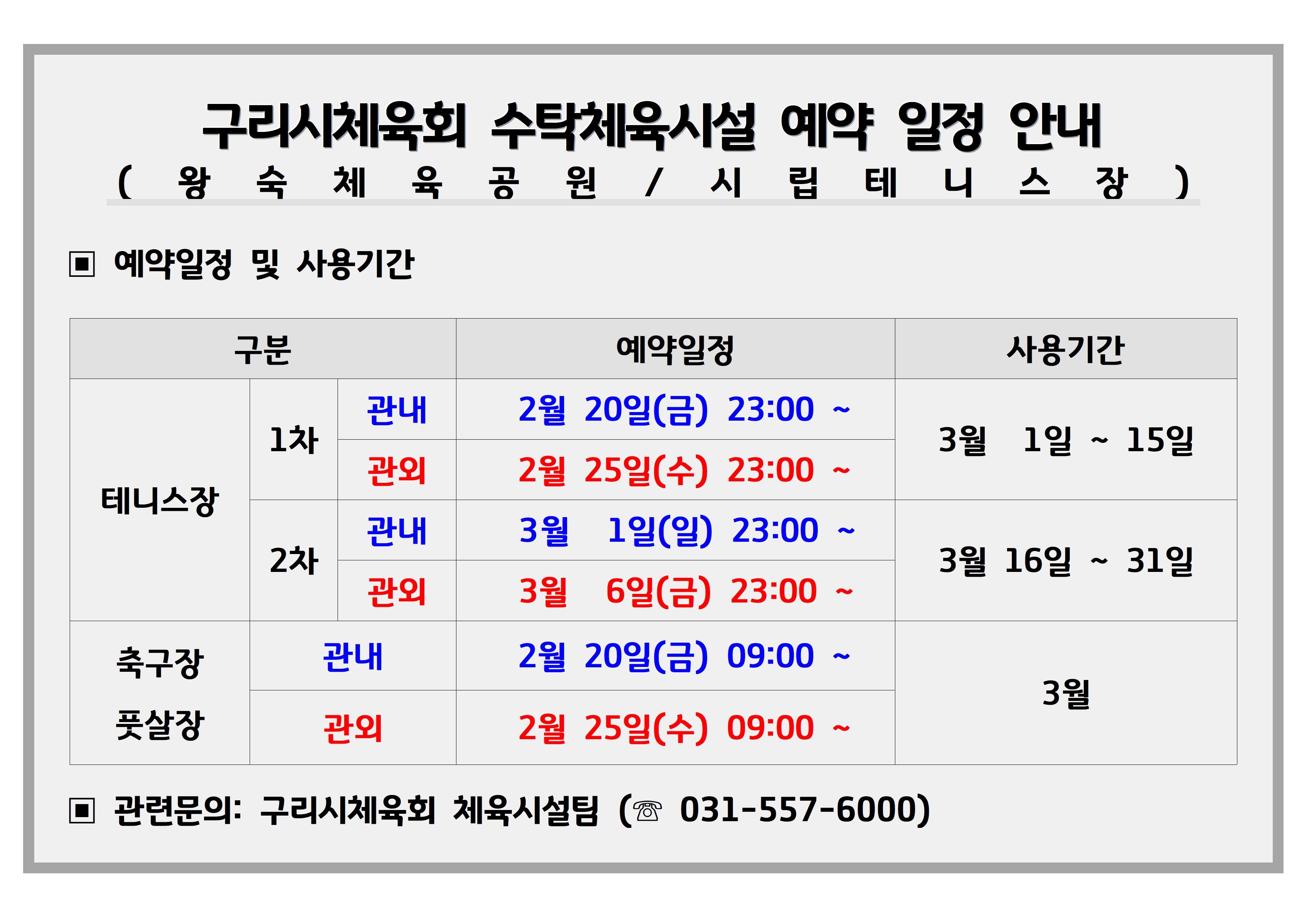 구리시체육회 수탁체육시설 3월 예약 일정 안내