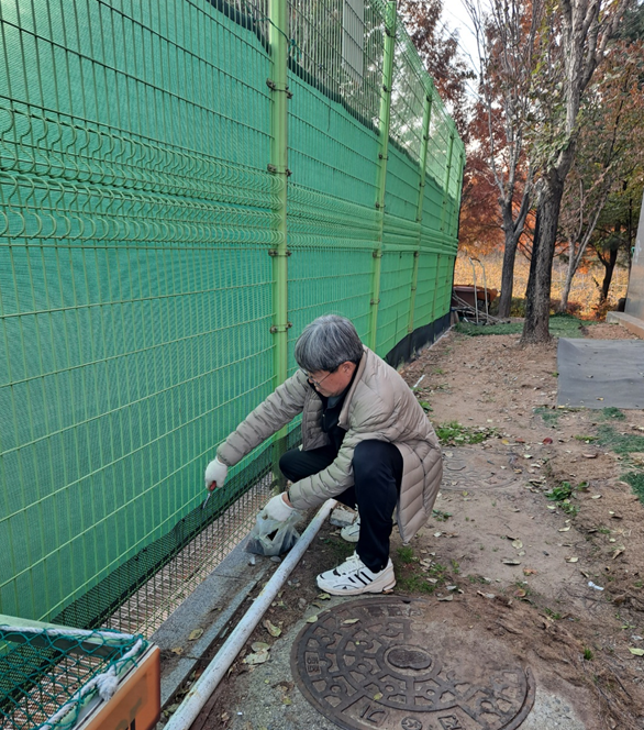 구리왕숙체육공원 외곽 청소(쓰레기 및 담배꽁초 수거) 및 테니스장 낙엽방지망 설치(2025. 11. 13.)
