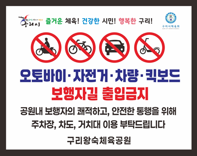 오토바이․자전거․차량․킥보드 보행자길 출입금지 안내