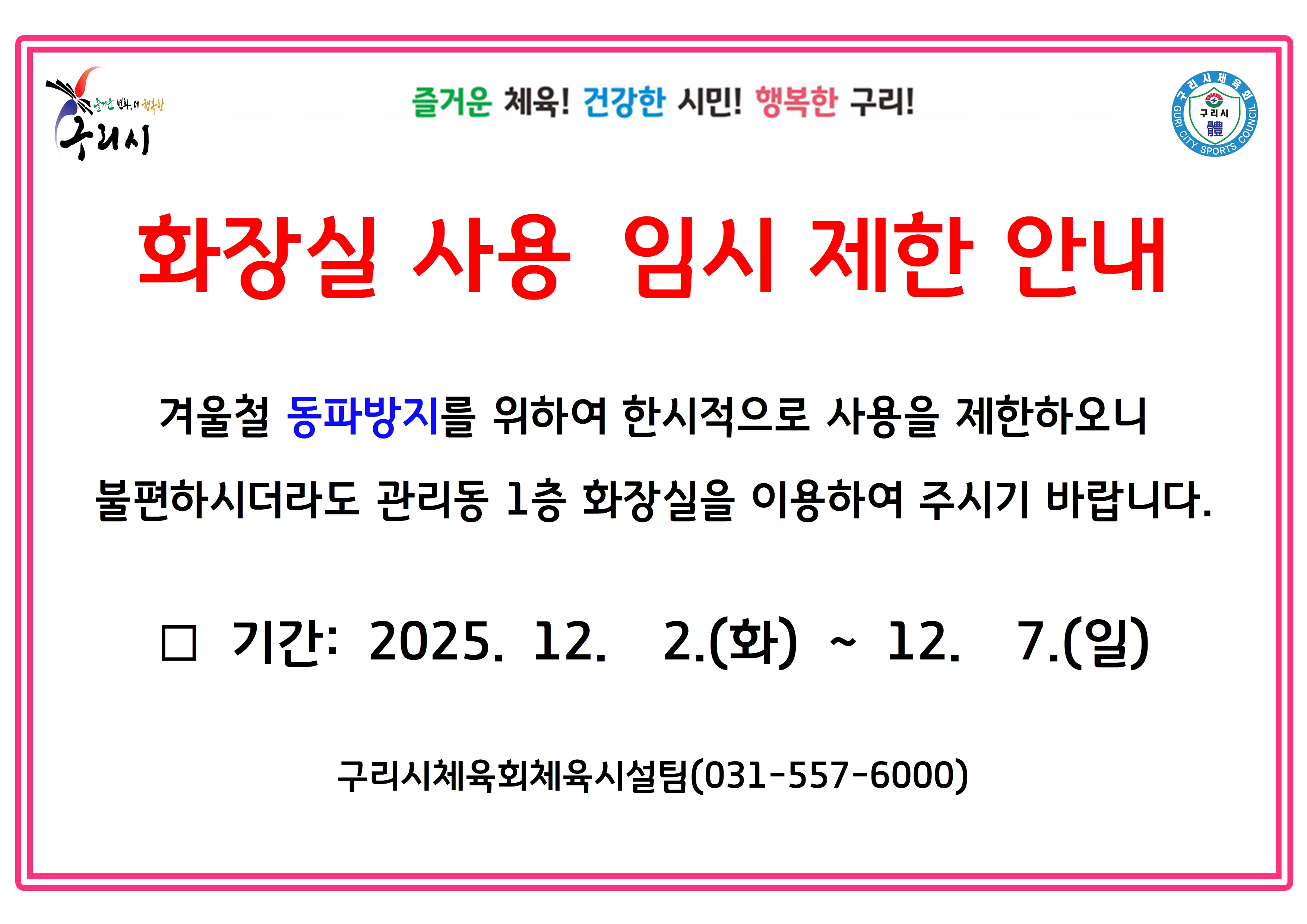 축구장, 테니스장 야외 화장실 사용 임시 제한 안내