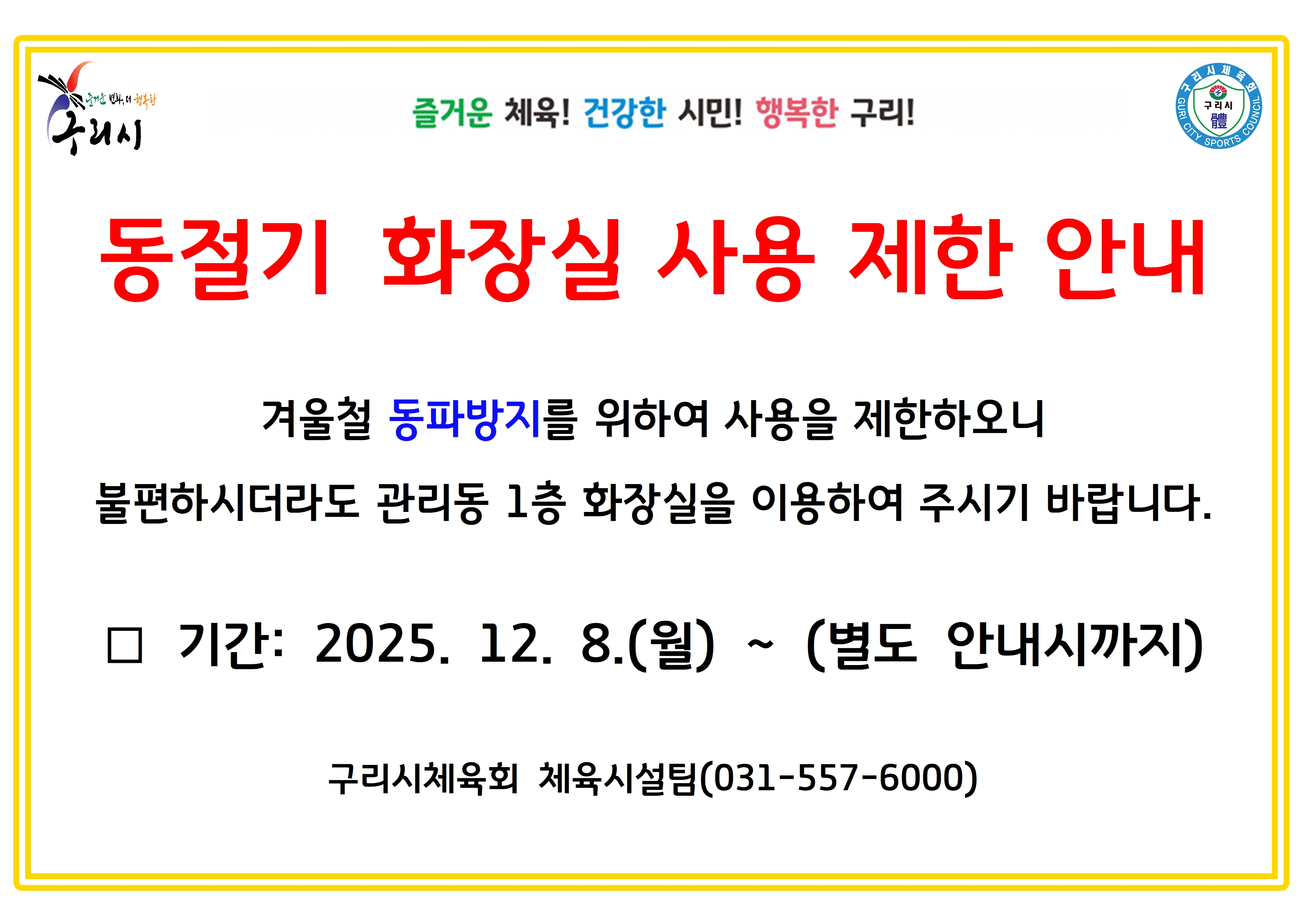[구리왕숙체육공원, 구리시립테니스장, 구리한강시민공원야구장] 신정 휴관 안내