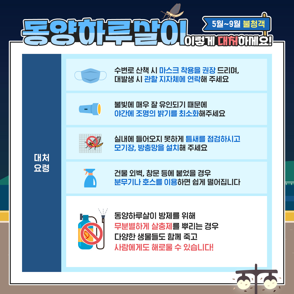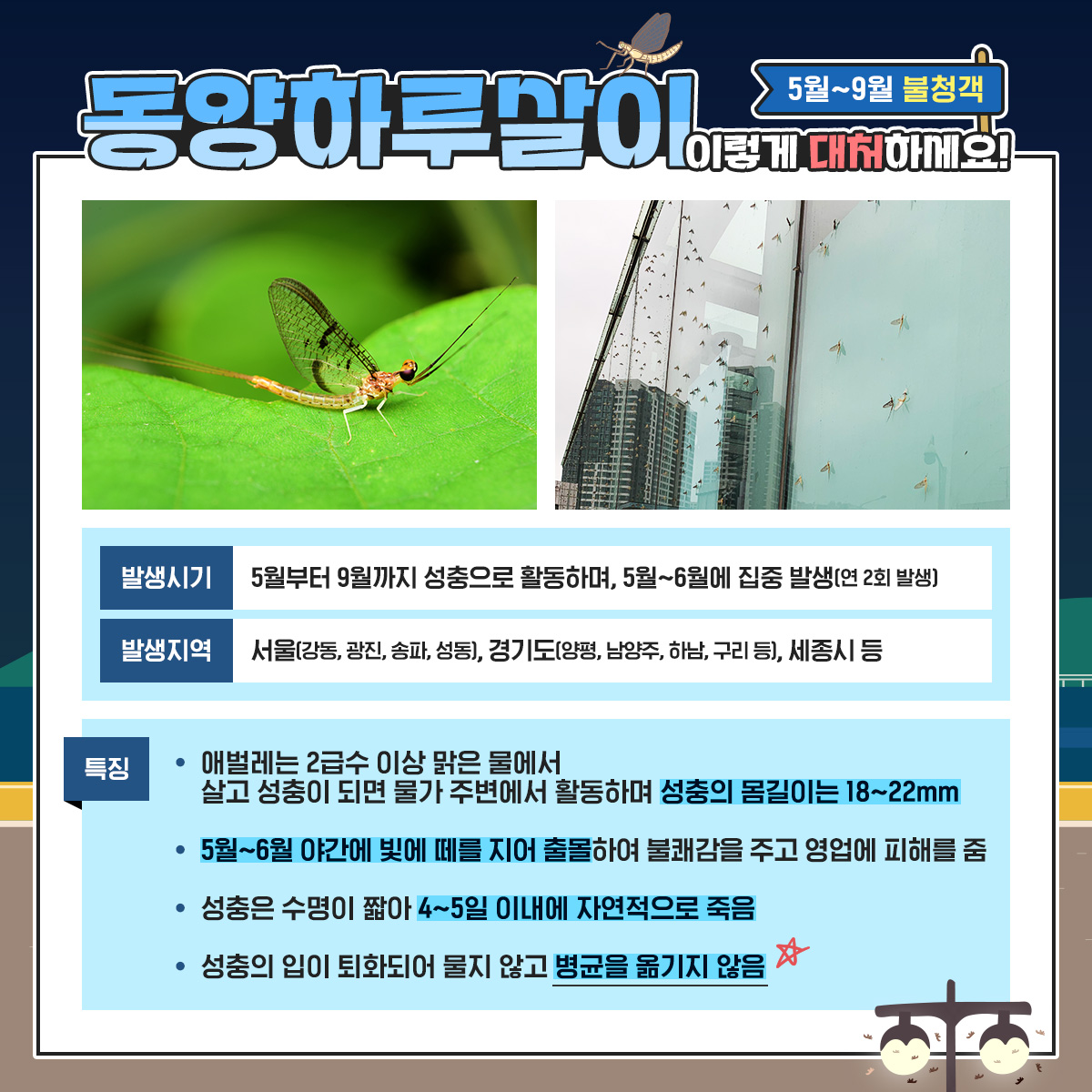 도심 및 인근지역에서 동양하루살이 대발생 시 이렇게 대처하세요!