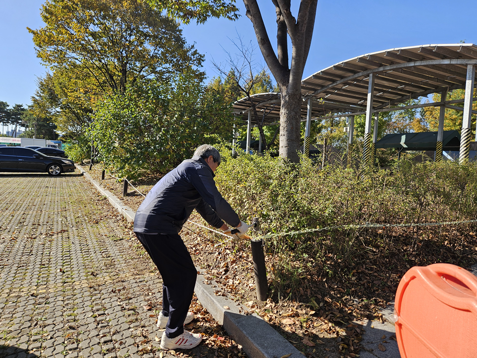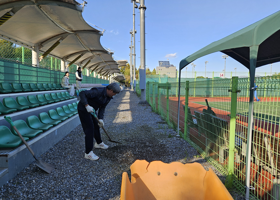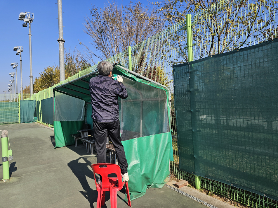 구리왕숙체육공원 외곽 청소(쓰레기 및 담배꽁초 수거) 및 테니스장 낙엽방지망 설치...