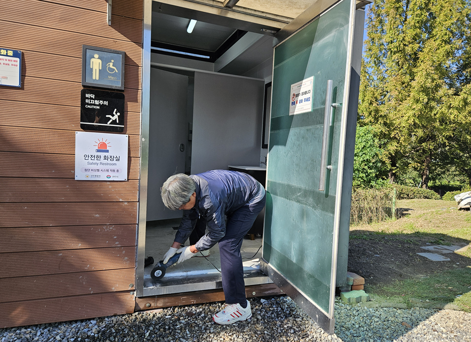 구리왕숙체육공원 개방형 화장실(남) 세면대 수리(2025. 11. 11.)